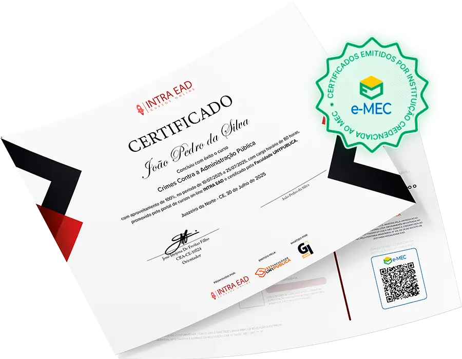 Os certificados da plataforma INTRA EAD são válidos em todo o território nacional e são emitidos pela UNYPÚBLICA, uma instituição credenciada ao Ministério da Educação (MEC) e parceira do INTRA EAD.